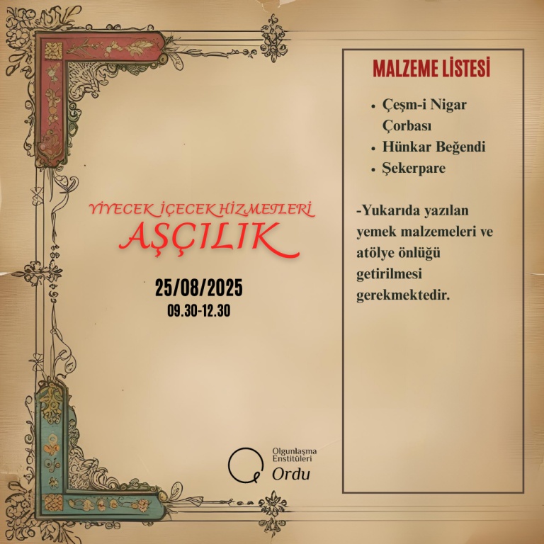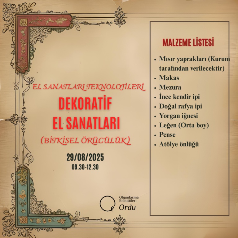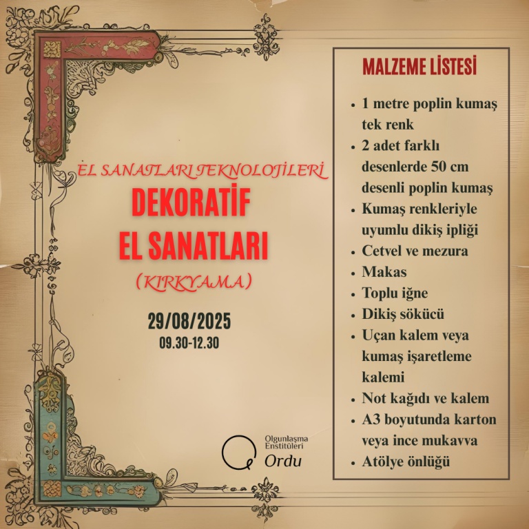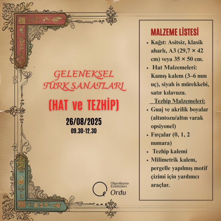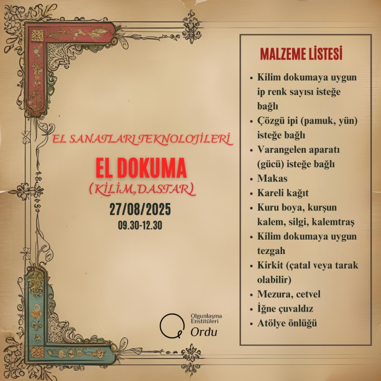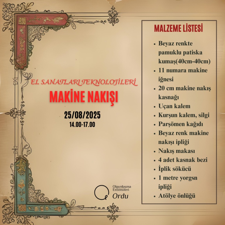 2025-2026 Eğitim Öğretim Yılı Enstitümüze ait Usta Öğretici Alım Sınavı Malzeme Listeleri;