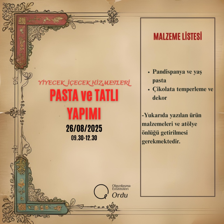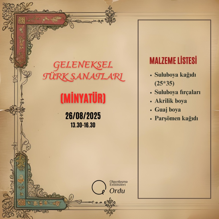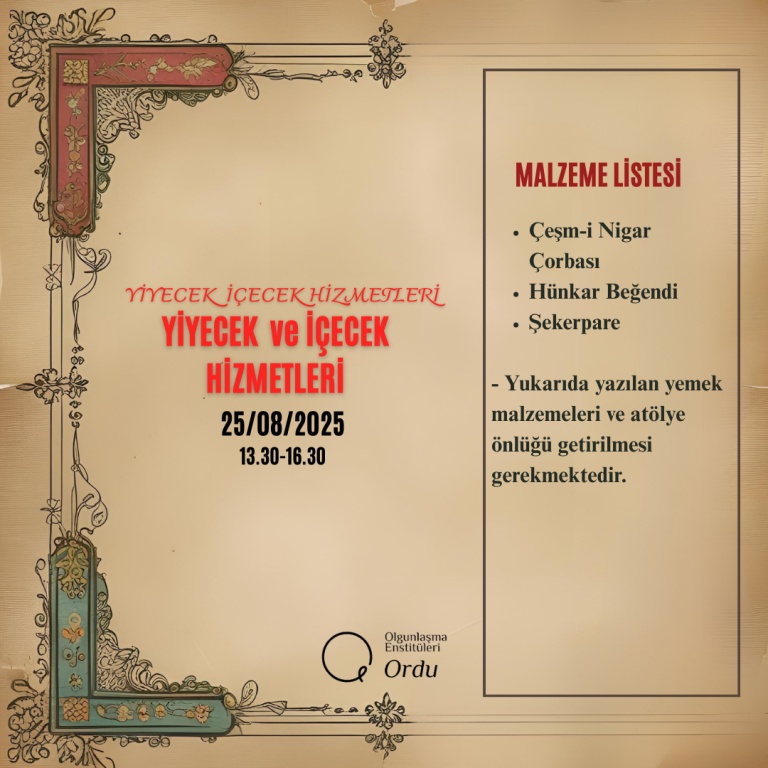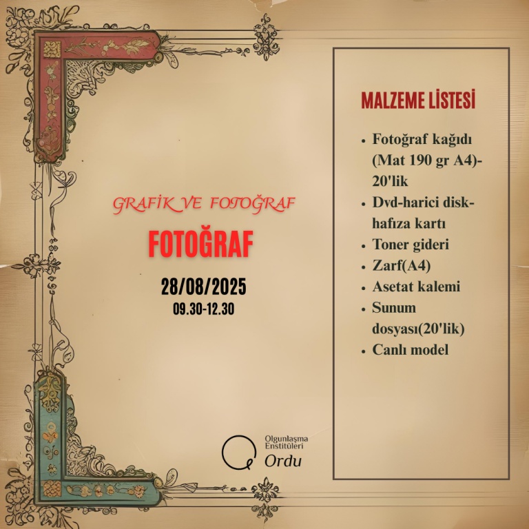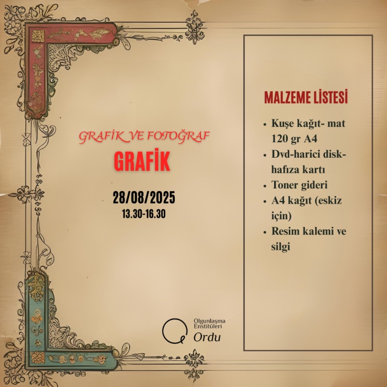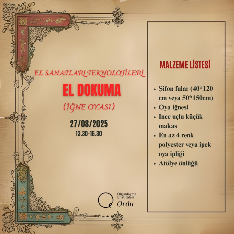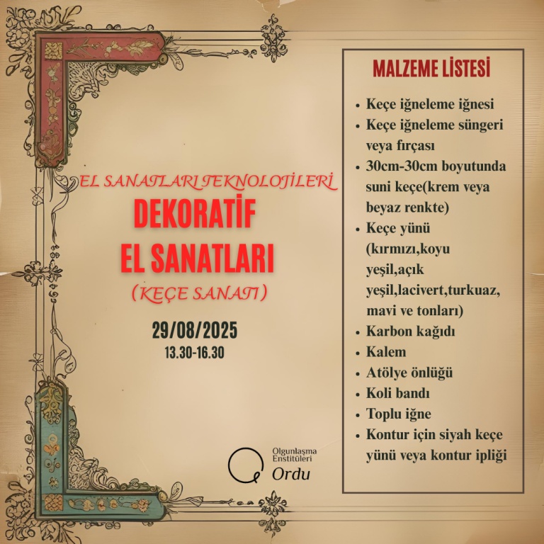 2025-2026 Eğitim Öğretim Yılı Enstitümüze ait Usta Öğretici Alım Sınavı Malzeme Listeleri;